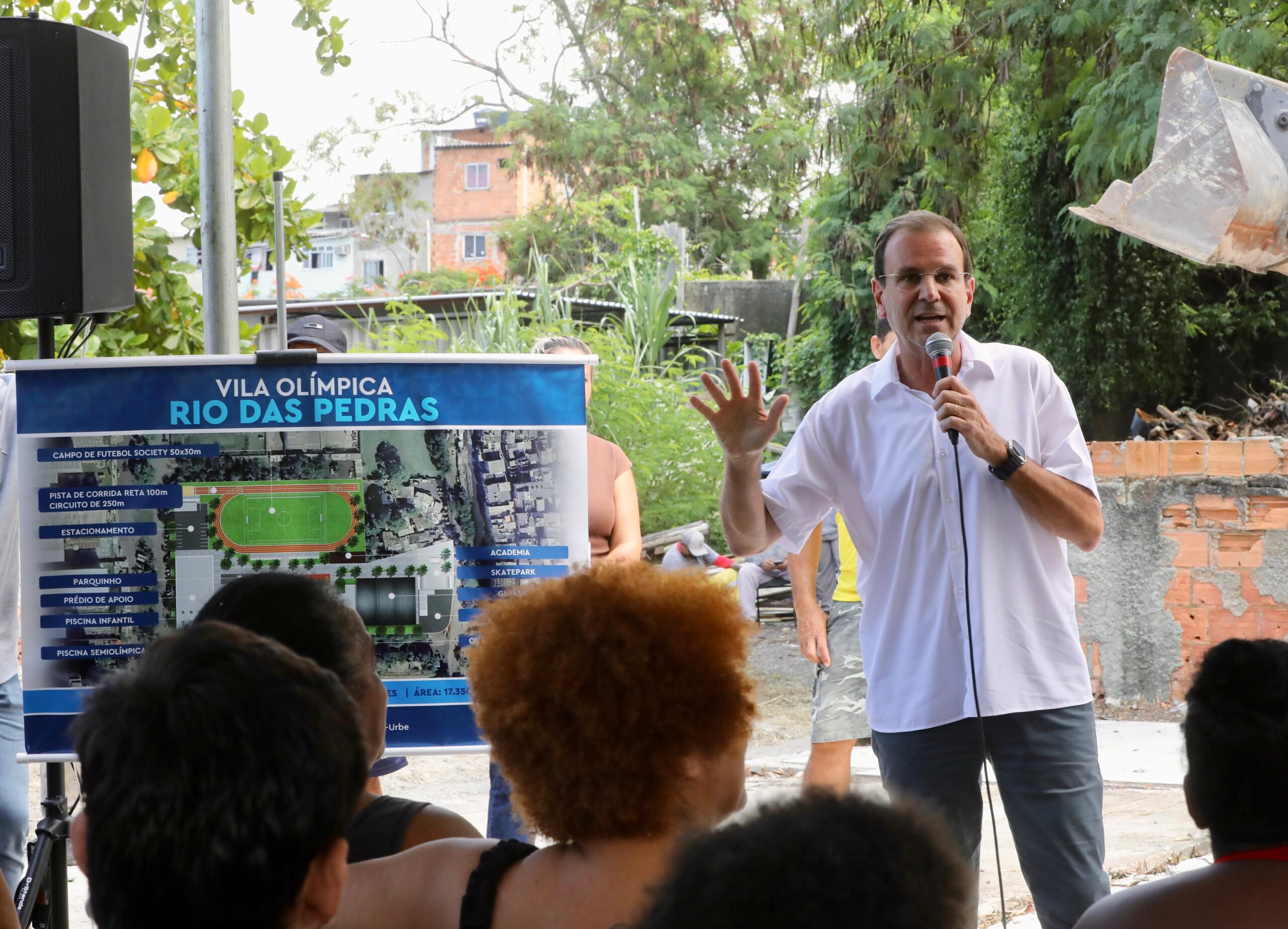O prefeito do Rio, Eduardo Paes, participou, nesta quarta-feira (25/2), do início da construção da Vila Olímpica de Rio das Pedras, na Zona Sudoeste. Com investimento de R$ 28,9 milhões, o novo equipamento público ocupará uma área de 18 mil metros quadrados e será destinado à promoção do esporte, da inclusão social e da qualidade de vida da população.