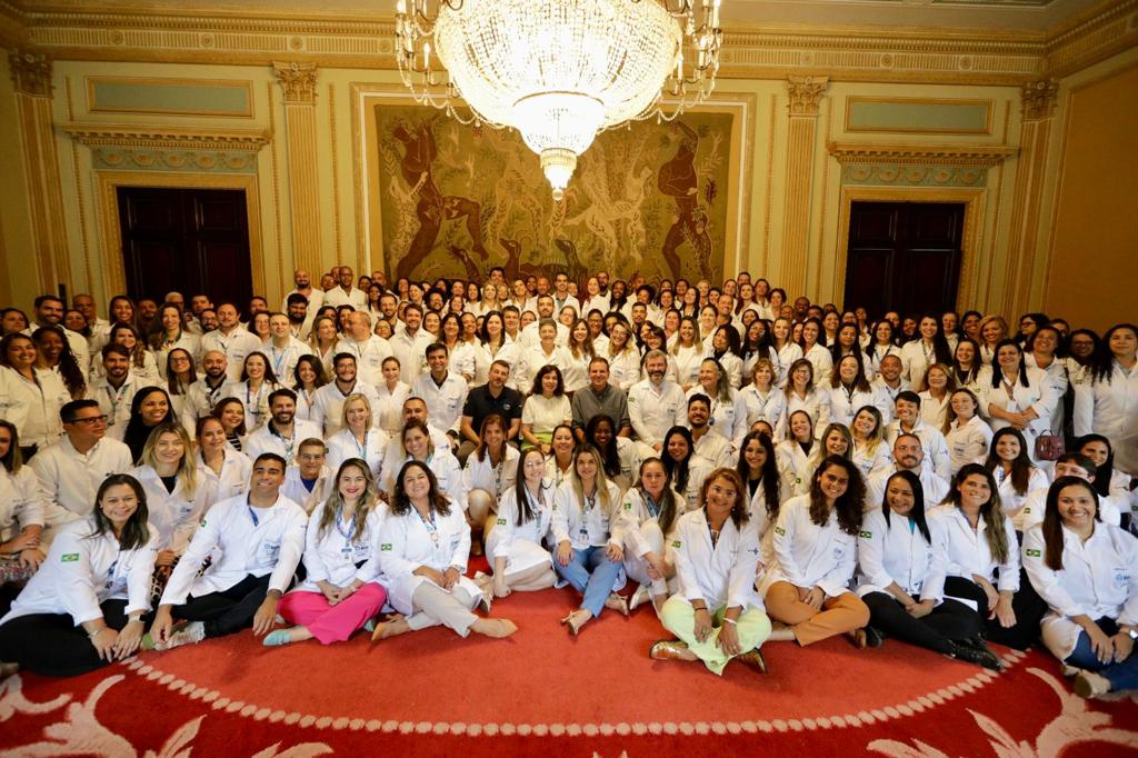 O prefeito Eduardo Paes, ao lado do secretário municipal de Saúde, Daniel Soranz, e da ministra da Saúde, Nísia Trindade, recepcionou, nesta sexta-feira (19/01), 218 médicos para a Saúde da Família vinculados ao Programa Mais Médicos para o Brasil, do Ministério da Saúde. Com a incorporação desses profissionais, a cidade do Rio de Janeiro retoma a marca de 70% de cobertura da população pela Atenção Primária à Saúde.
